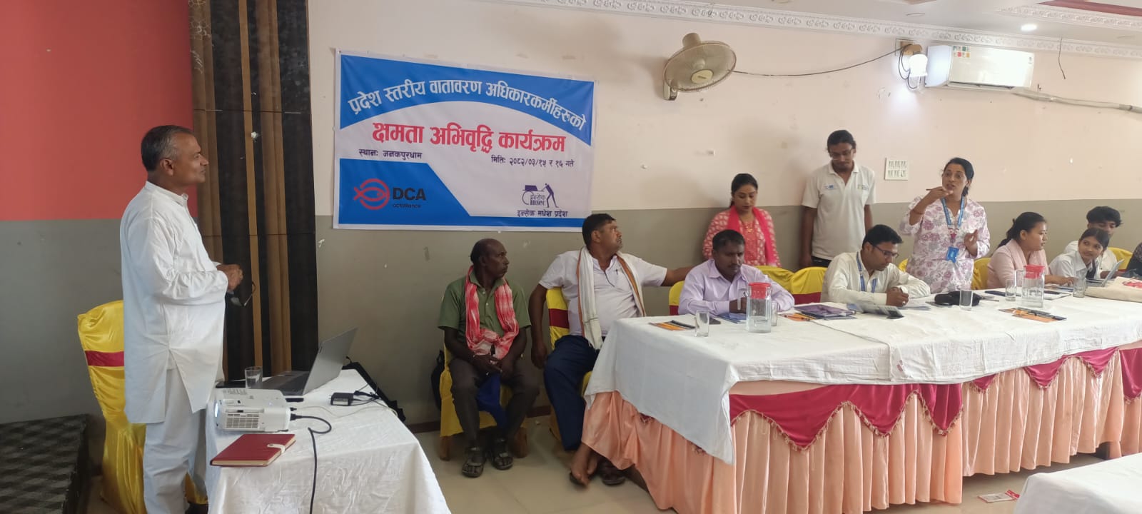 कार्यक्रममा प्रशिक्षक तथा राष्टिय मानव अधिकार आयोगका सहसचिव बुधनारायण सहनीले वातावरण संरक्षणमा मानव अधिकार र मानव अधिकार रक्षकहरूको भूमिका विषयमा डिजिटल प्रस्तुति दिनुभयो ।