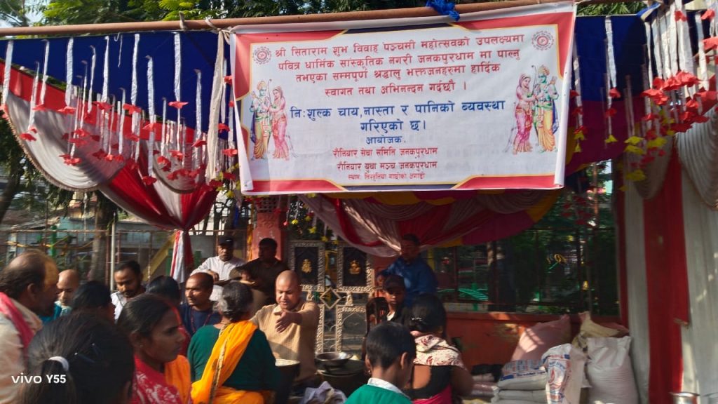 भगवान् राम र माता सीताको पावन विवाहको स्मृतिमा प्रत्येक वर्ष भव्यतापूर्वक मनाइने विवाह महोत्सवका अवसरमा नेपाल, भारत तथा अन्य मुलुकबाट समेत श्रद्धालुहरूको ठूलो भीड जनकपुरधाम आइपुग्ने गर्दछ। यही भीडलाई सहज, सुरक्षित र सम्मानजनक सेवा उपलब्ध गराउन स्थानीय संघ–संस्थाहरूले विभिन्न चौक तथा धार्मिक स्थलहरूमा निःशुल्क भोजन तथा स्वास्थ्य शिविर संचालन गरेका छन्।